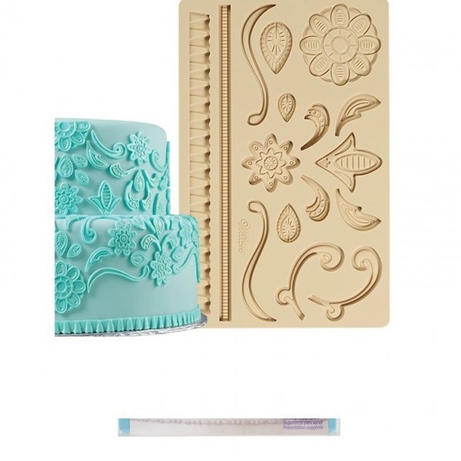 Faça graciosas rendas pergaminhos, flores, folhas, medalhões e guarnições com os moldes de silicone de fácil utilização.