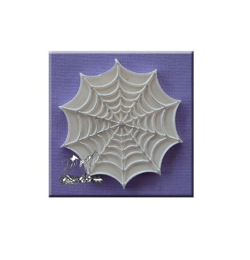 Molde em silicone redonda com desenho de teia de aranha, de aproximadamente 6cm.