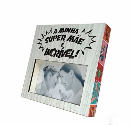Uma moldura especial e única para oferta de dia da mãe. Com luz e com a inscrição "A Minha Super Mãe é Incrível".
