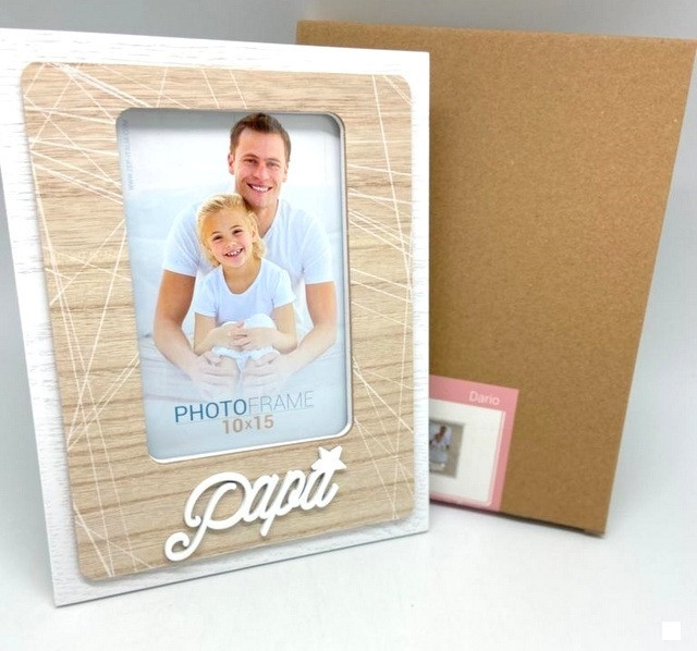 Uma moldura especial e única para oferta de dia do pai. Com a inscrição Papá com uma estrela.