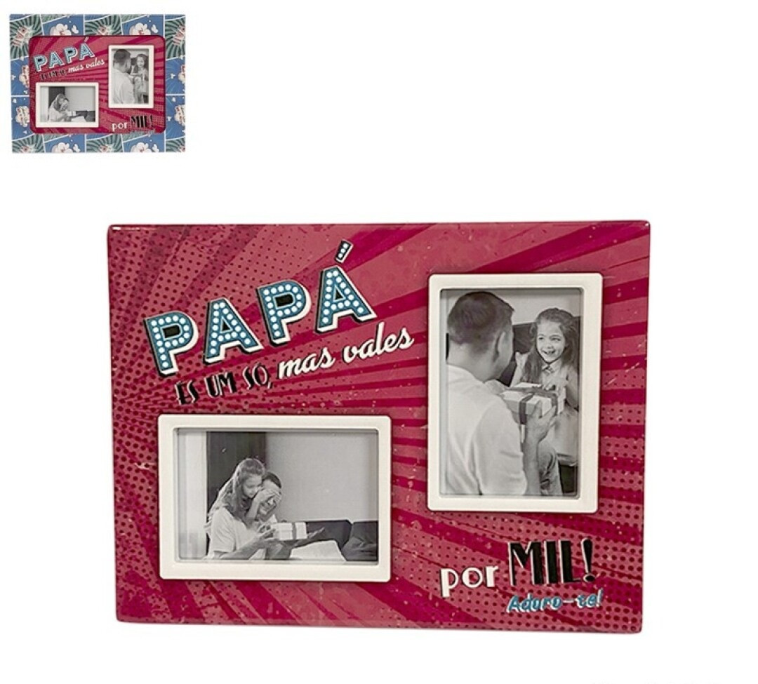 Para lembrança do dia do pai ou de outra ocasião especial, uma moldura dupla em cerâmica para colocar uma foto única, com a inscrição "Vales Por Mil."
