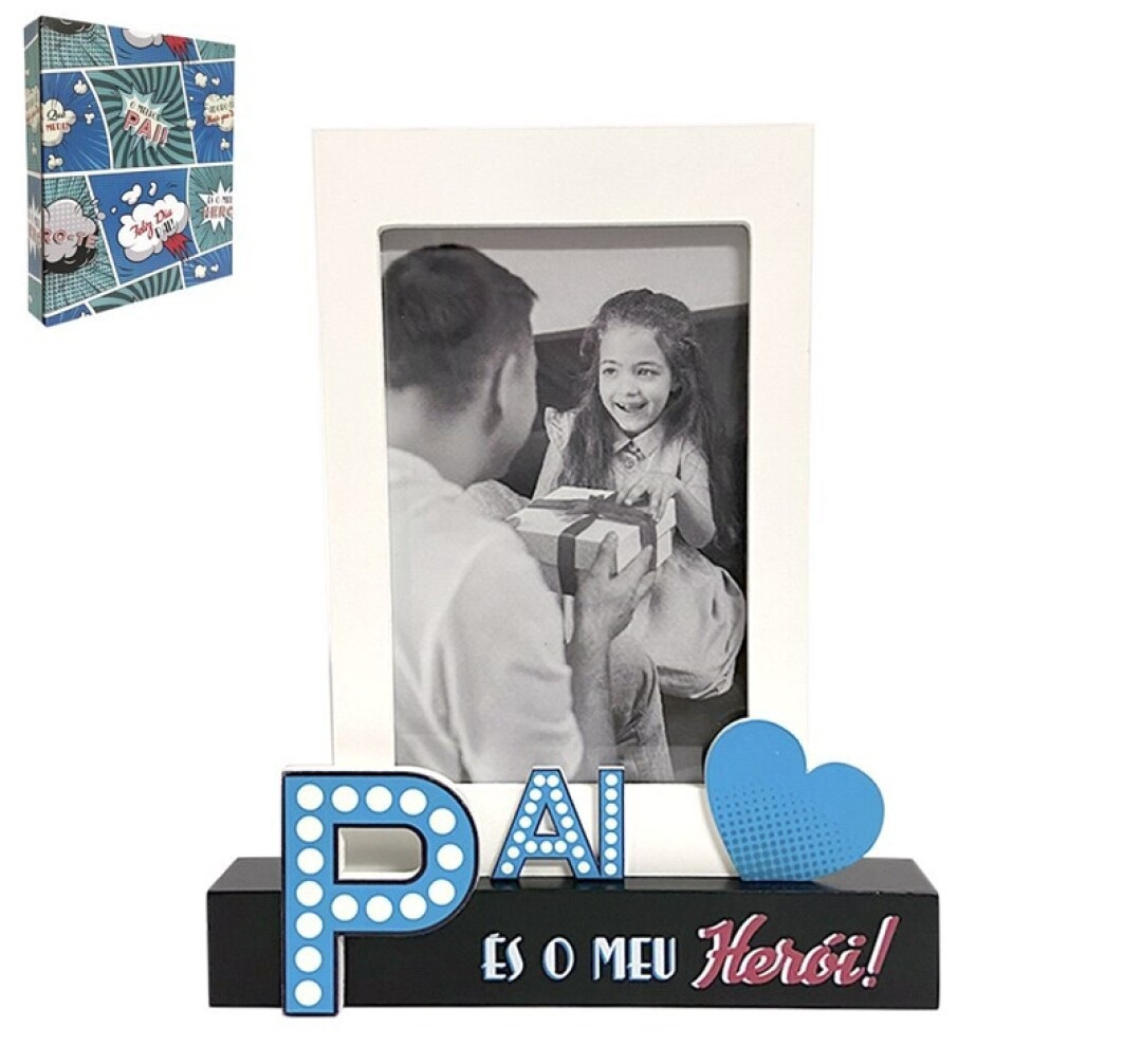 Para lembrança do dia do pai ou de outra ocasião especial, uma moldura em mdf para colocar uma foto única, com a inscrição "Pai És O Meu Herói."