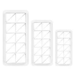 Crie bolos geométricos incríveis com este conjunto de multicortadores trinagulares que permitem cortar até 10 decorações por vez, perfeito para colocar e decorar bolos, biscoitos, cupcakes e muito mais.