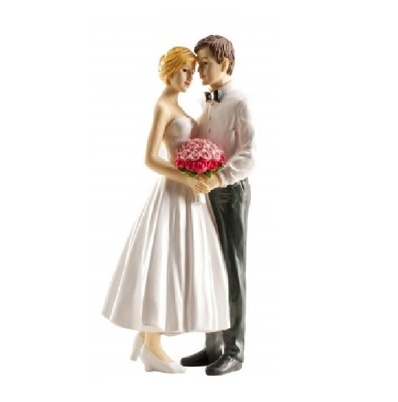 Noivos 16cm com Ramo para decoração de bolos de casamento