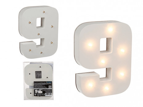 Número 9 com iluminação de 7 Leds com 16cm de altura. Fabricado em MDF este artigo é ótimo para decoração de salas, quartos, aniversários ou outros eventos e pode ser utilizado de dois modos, livre em qualquer superfície ou suspenso na parede.