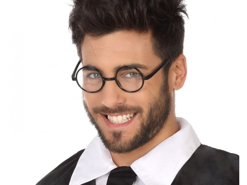 Óculos pretos em formato redondo para disfarces do Harry Potter.