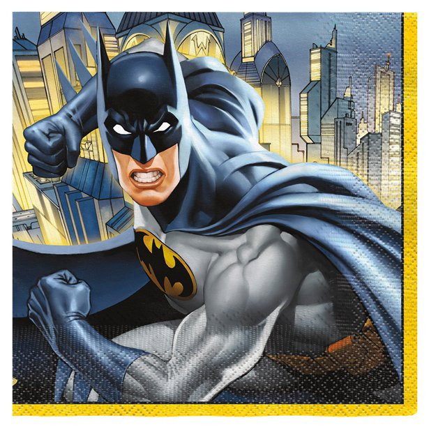 Pack com 16 guardanapos com o tema Batman para tornar a tua festa de aniversário num autêntico sucesso.