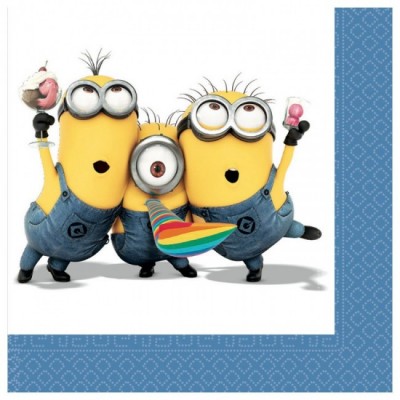 20 guardanapos azul/branco dos Minimos, com as dimensões de 33x33cm para uma festa de aniversário original e divertida com os irresistíveis Minions