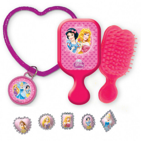 Contém 6 ganchos para o cabelo, 6 pulseiras em forma de coração, 6 escovas de cabelo e 6 anéis.