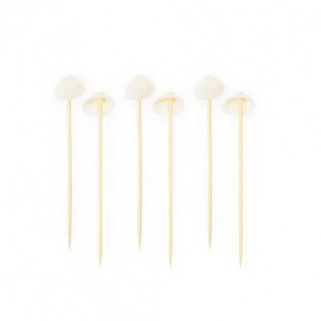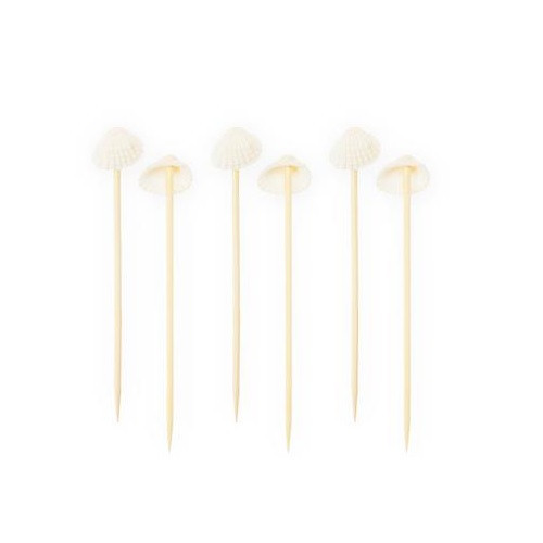 Conjunto de 24 palitos para cocktail, entradas, aperitivos, com conchas no topo. Ideal para o tema de festa das sereias.