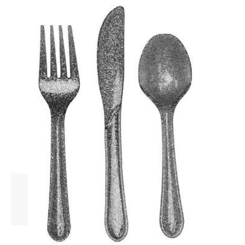 Conjunto de 24 talheres de qualidade superior, com glitter prateado, composto por 8 facas; 8 colheres e 8 garfos
