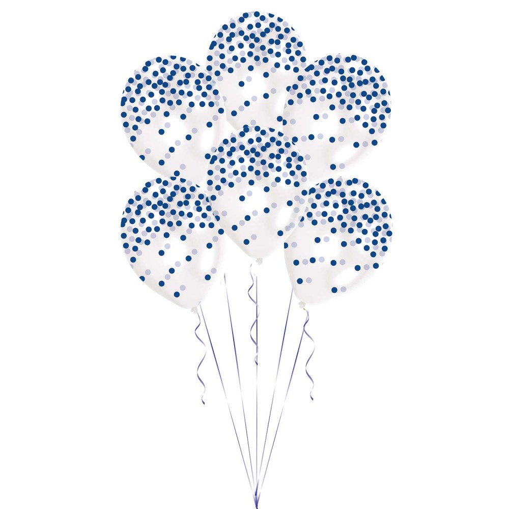 Pack 6 balões Latex Confetti Impresso Azul