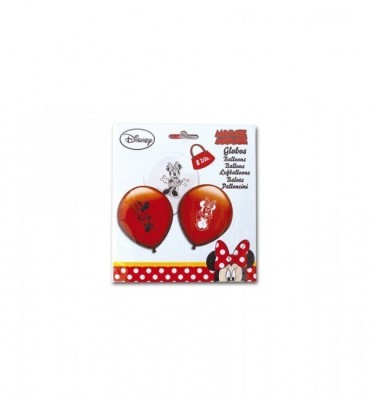 Pack de 8 balões, cor vermelha e roxo com estampagem da Minnie Mouse para decorares a tua festa de aniversário.