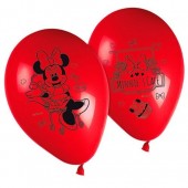 Pack de 8 balões, cor vermelha com estampagem da Minnie Mouse para decorares a tua festa de aniversário.
