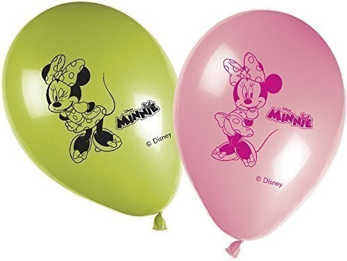 Pack de 8 balões, cor rosa e verde com estampagem da Minnie Mouse para decorares a tua festa de aniversário.