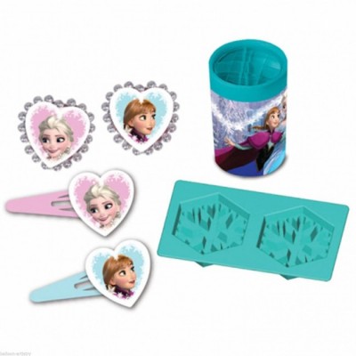 Conteúdo: - 6 anéis - 6 molas de cabelo em forma de coração- 6 Prismas com Ice Queen - 6 formas de cristal de gelo