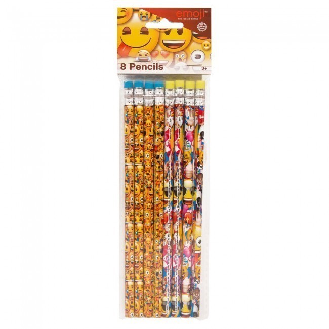 Blister com 8 lápis de carvão dos divertidos emoji com borracha no topo.