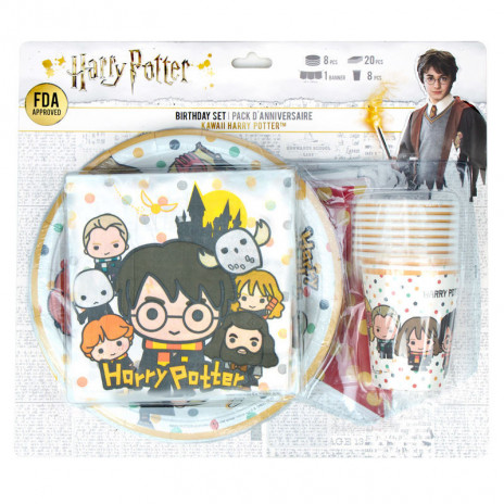Conjunto de festa do Harry Potter Kawaii composto por 1 grinalda, 8 copos, 8 pratos e 20 guardanapos.