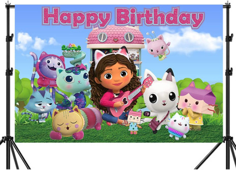 Painel decorativo da Casa de Bonecas da Gabby com as medidas de 100x150cm.