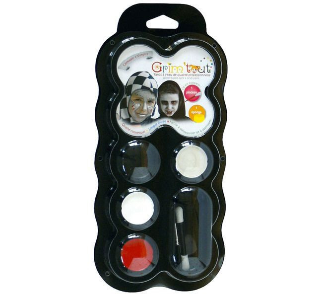 Paleta de tintas para pinturas faciais para festa ou carnaval de cavaleiro e vampiro. Inclui pincel, esponja, livro e 4x4ml de tinta à base de água, antialérgica, sem parabenos, de fácil remoção.