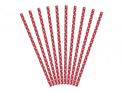 Palhinhas em papel de cor vermelha com bolinhas brancas com cerca de 19.5cm de comprimento.Cada conjunto contém 10 palhinhas.