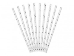 Palhinhas em papel de cor branca com estrelas prateadas com cerca de 19.5cm de comprimento.Cada conjunto contém 10 palhinhas.