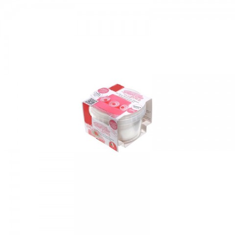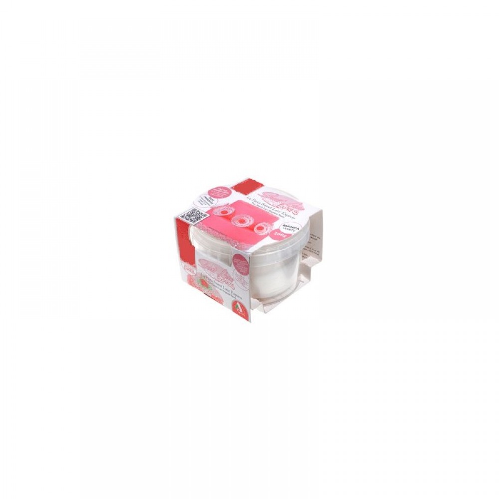 Ingredientes: Amido de trigo (53%) , xarope de glicose , óleos e verduras E433, corante E171, espessante E415, acidulante E330. Conservador E220, Aroma.