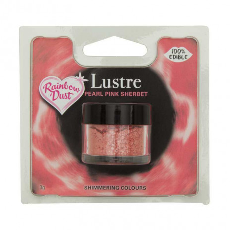 Corante em pó da gama de pós da coleção lustre, na cor pink sherbet. Este pó metálico fino exclusivo foi especialmente projetado para criar um belo brilho e lustro. É um produto especialmente adequado para se dissolver em álcool para fazer tintas comestíveis.