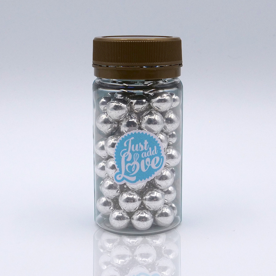 Pérolas de açúcar com aproximadamente 10 mm para decoração de bolos, bolachas, cupcakes, cake pops, donuts, sobremesas e outras preparações.