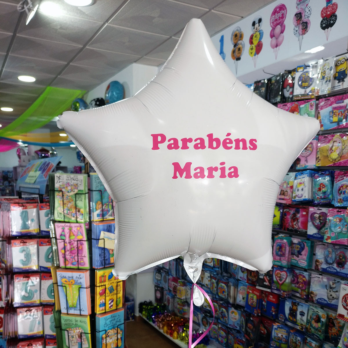 Serviço de personalização de balões foil até 18" (aprox. 45cm) em qualquer formato, redondo, oval, estrela, diamente ou quadrado para balões adquiridos na nossa loja online.