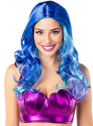 Peruca Azul para adolescente e adulto, com madeixas mais claras e lilás.