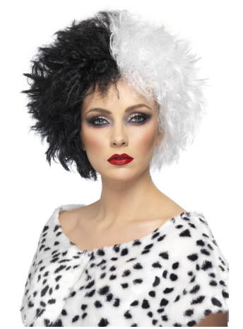 Adorne o seu disfarce de carnaval com a peruca da Cruela dos 101 Dálmatas da Disney.