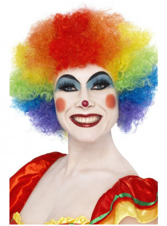 Peruca colorida para adulto. A peruca é volumosa e tem as cores do arco-íris, para dar mais mais diversão ao seu disfarce.