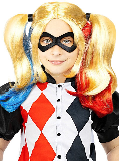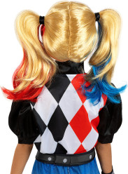 Peruca loira com madeixa azul e vermelha para adicionares ao teu disfarce da Harley Quinn.