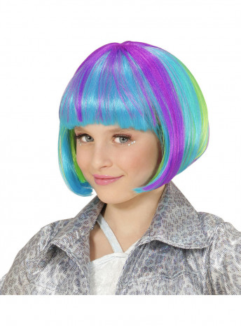 Peruca para disfarce de Carnaval de cabelo médio multicolor