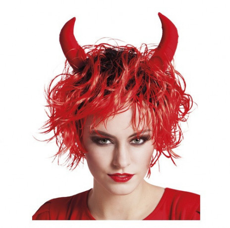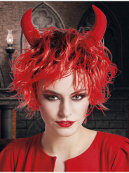 Para complementar o seu disfarce de halloween ou de carnaval, uma peruca vermelha de diaba com cornos para mulher.