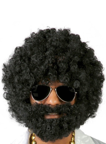 Conjunto de peruca e barba afro para adulto. Na cor preta ideal para complementar a sua fantasia de Carnaval.