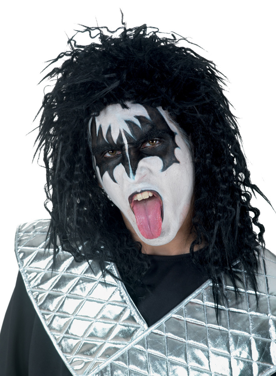 Adicione ao seu disfarce de carnaval esta peruca preta para fatos de heavy metal.