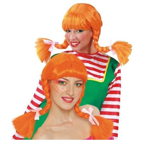 Adicione esta peruca cor de laranja com tranças ao seu disfarce de carnaval.