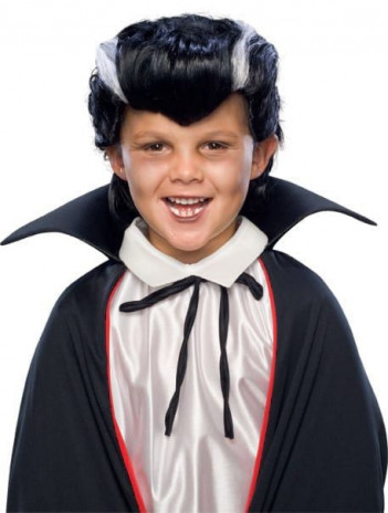 Peruca de vampiro de cor preta com madeixas em branco para menino.