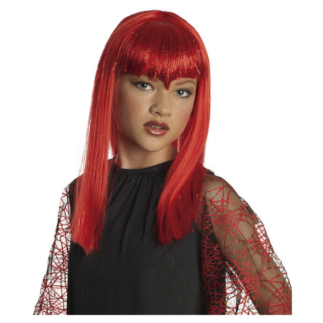 Peruca para vampira de cor vermelha com brilhos para o Carnaval ou Halloween.