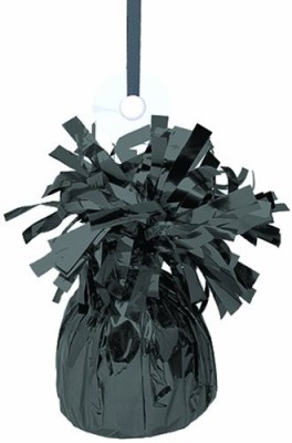 Peso de cor preta para amarrar balões de foil ou latex cheios com hélio com 175 gramas de peso e 6 cm de diâmetro na base.