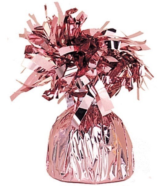 Peso de cor rosa para amarrar balões de foil ou latex cheios com hélio com 170 gramas de peso e 6 cm de diâmetro na base. Disponível em cor rosa