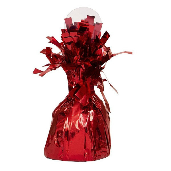 Peso de cor vermelha para amarrar balões de foil ou latex cheios com hélio com 175 gramas de peso e 6 cm de diâmetro na base.