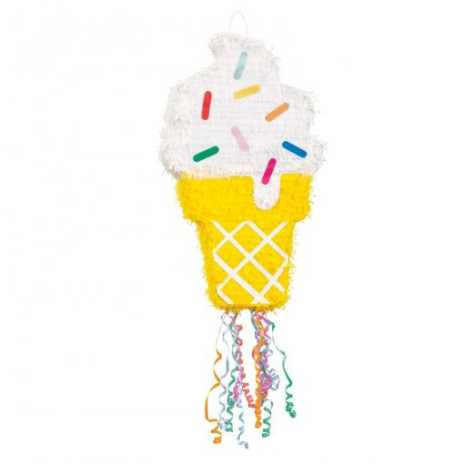 Uma divertida pinhata com fios para puxar em forma de cone de gelado. Também pode usar um bastão (vendido à parte).