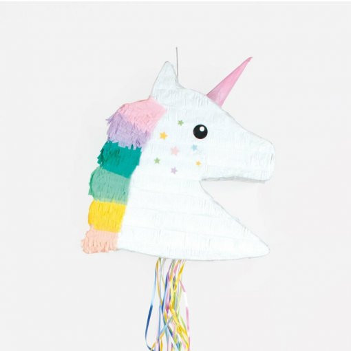 Pinhata em cartão reciclado para festa de aniversário em forma de unicórnio. Uma pinhata fornecida sem qualquer recheio.