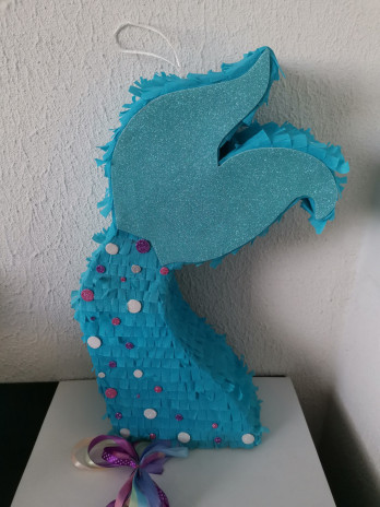 Pinhata em forma de cauda de sereia com brilhos para colocar doces e pequenos presentes para festas. Com 8 fitas para puxar ou também pode bater com o bastão.