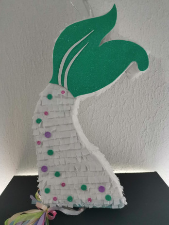 Pinhata em forma de cauda de sereia com brilhos para colocar doces e pequenos presentes para festas. Com 8 fitas para puxar ou também pode bater com o bastão.