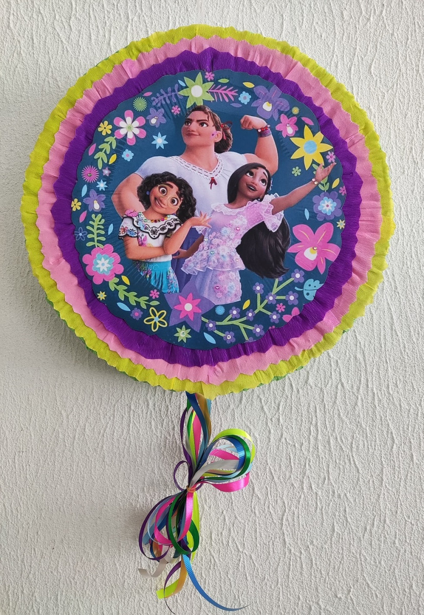 Pinhata artesanal em formato redondo do filme Encanto da Disney com as dimensões de 36x10cm.