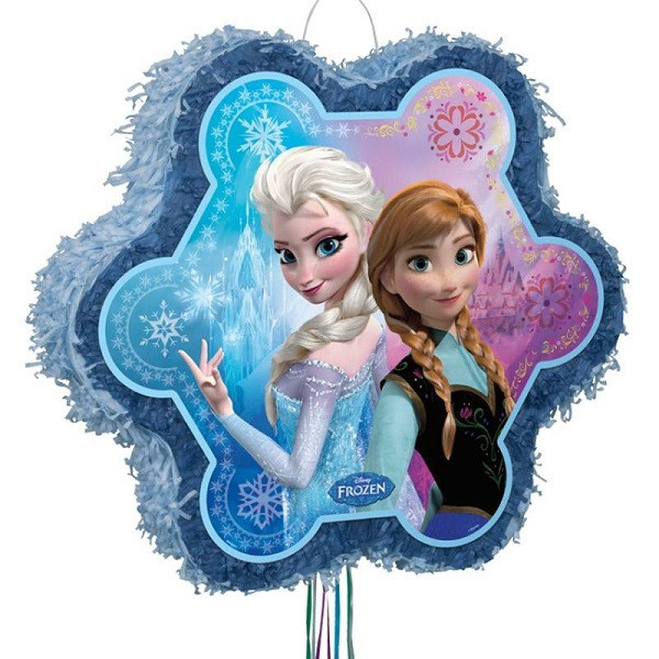 Pinhata da Frozen Disney com a Anna e a Elsa, com capacidade para para levar doces e pequenos presentes para festas.
